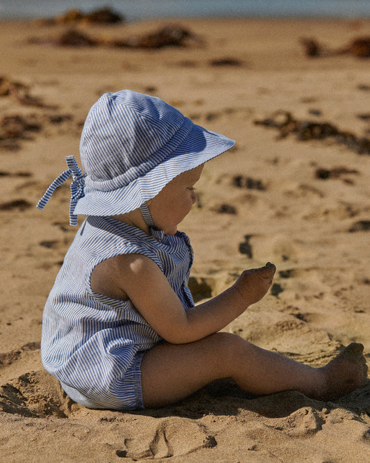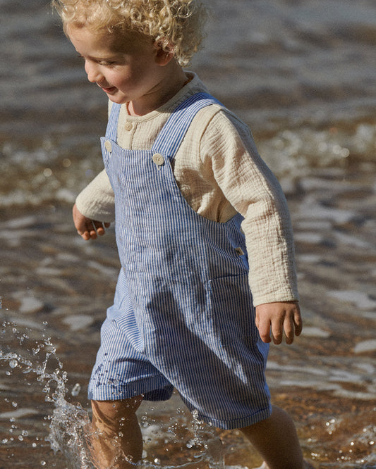TUCKER SHORTIE OVERALLS LINEN - BLUE STRIPE