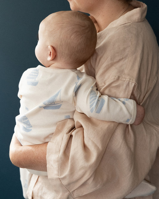 STRETCH JERSEY S/S BODYSUIT - SAIL BOAT PRINT
