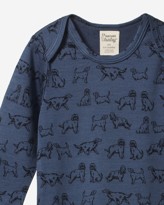 MERINO ESSENTIAL L/S BODYSUIT - DOG DAYS PRINT MERINO