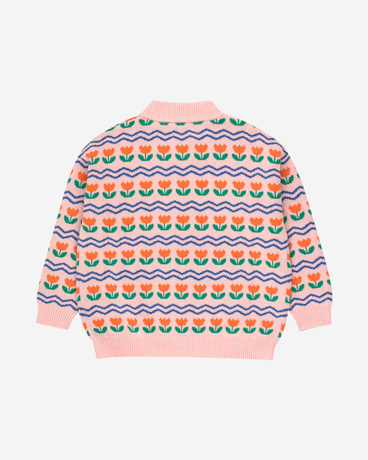 FLOWERS MOCKNECK CARDIGAN - PINK