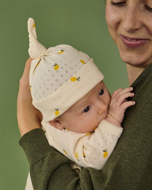 KNOTTED BEANIE POINTELLE - LEMON PRINT