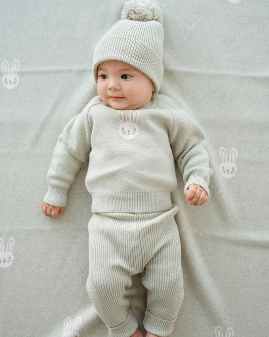 BUNNY KNITTED BLANKET - HONEYDEW MARLE