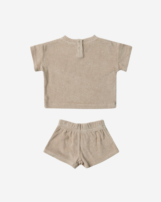 BOXY POCKET TEE AND SHORT SET - ASH STRIPE