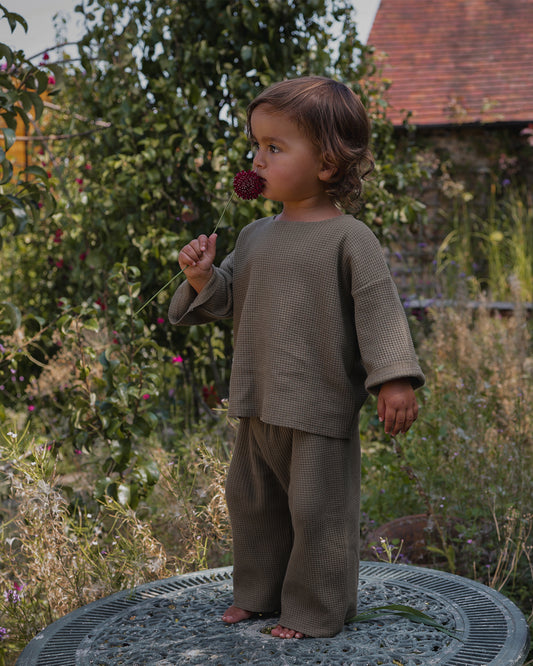 OLIVE WAFFLE BOXY SWEATSHIRT
