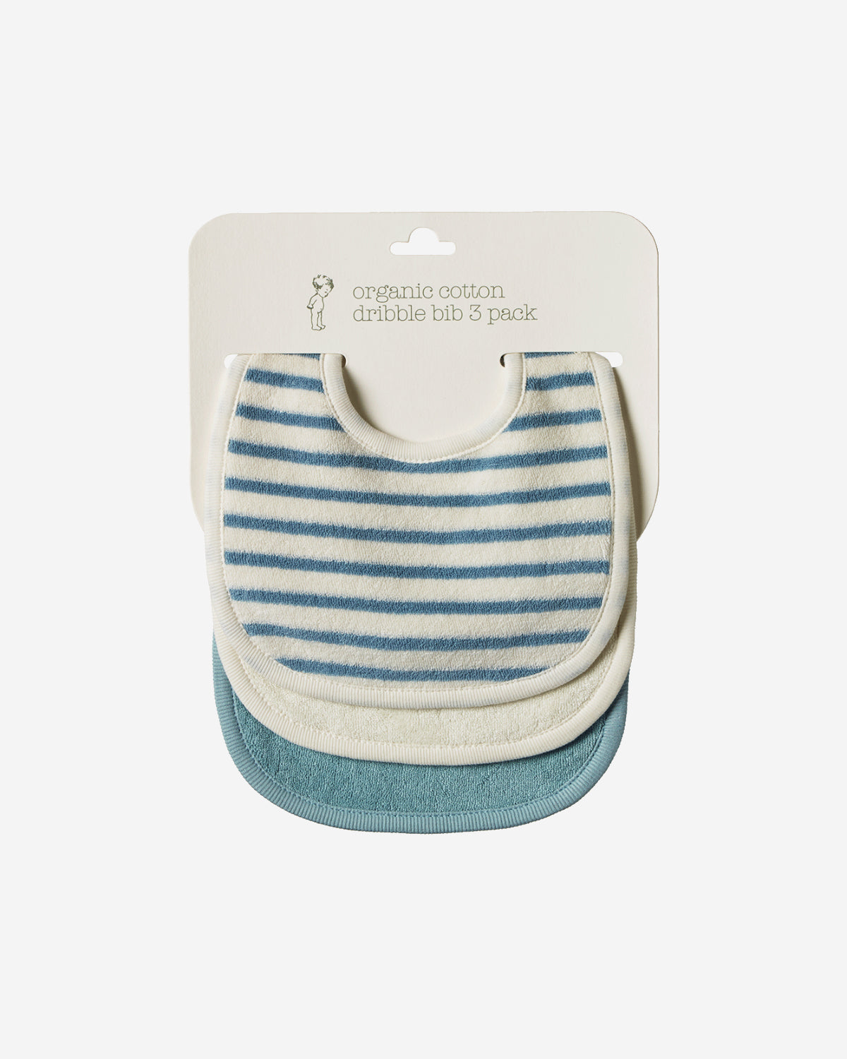 DRIBBLE BIBS 3 PACK - POWDER BLUE/NATURAL