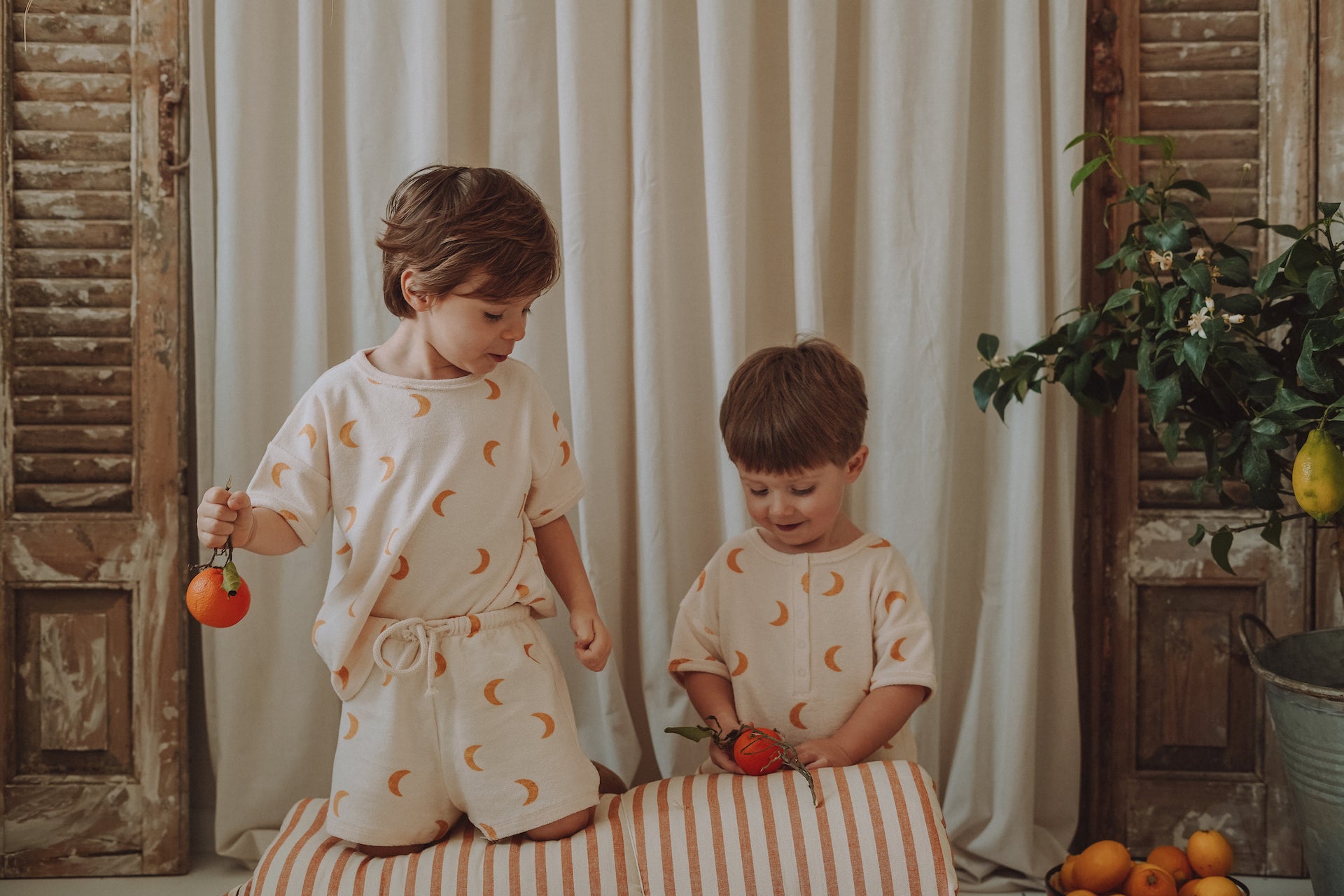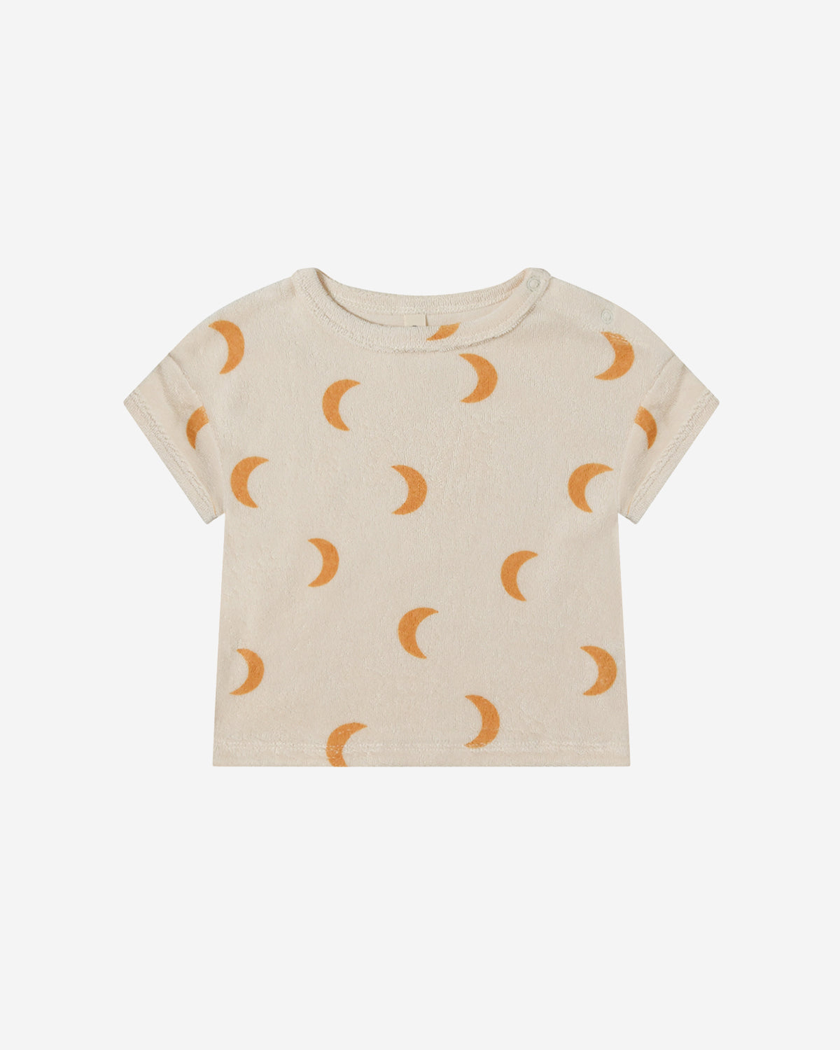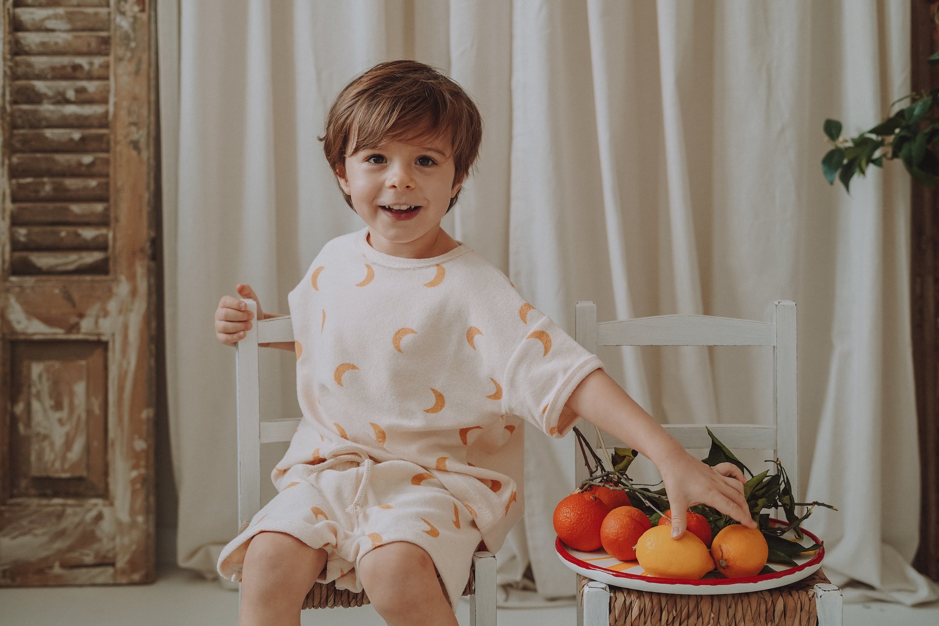 This season midnight print features moons in a beautiful honey hue - ideal for all these long days at the beach and play dates in the park. Pair it with the matching shorts or with any bottoms from our new summer range.