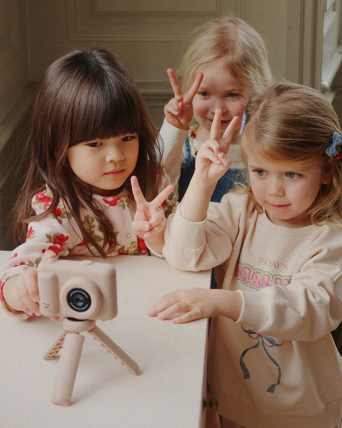 Multifunctional digital camera with a high-definition preview screen that allows children to instantly see their photos. Features a fun selfie function, video preset, and three pre-installed games, as well as a practical tabletop tripod that makes it easy to take selfies.