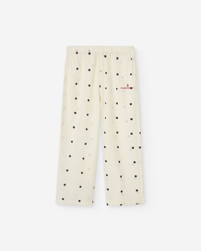 Covered in cheerful dots, this airy pants twirls with ease and simplicity. A timeless staple crafted to accompany bright days filled with laughter. Beautiful kids designer clothes for every moment.
